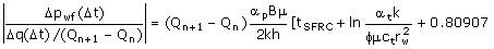 Multilayer Transient Test Deconvolution. When pressure and sandface rate are simultaneously measured, the Gladfelter deconvolution or rate-normalized pressure resembles the pressure transient response to a step change in the sandface rate. For the CSLT test, flowmeters are positioned above and below the tested interval and a simple subtraction (qj(t) - qj+1(t) indicates rate to the zone. Then, a log-log plot of the convolution derivative or the deconvolution derivative is used to diagnose a reservoir model for the single layer. That is plot (in log-log coordinates):
