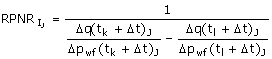 For the MLT, it is not possible to subtract the flow rates from a transient measurement made at different times. Dividing by the simultanteoulsy measured pressure change normalizes the time-dependent flow rate change from each transient. The resultant pressure-normalized rate has been corrected for flow rate fluctuations and for the magnitude of the surface flow rate change that initiated the transient. Subtract consecutive (above and below a zone) pressure-normalized rates. "The reciprocal pressure-normalized rate difference (RPNR) is a convenient extension of the Gladfleter deconvolution. The log-log plot of the RPNR and its derivative with respect to the logarithm of time provides response patterns like those of the pressure change and its derivative."