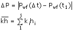This shows a darcy-like relationship between the permeability and thickness of a layer (layer( "j"), the pressure gradient with radial position, the compressibility, viscosity, porosity and the change in pressure with time - similar to what you would find in the equation for radial flow into a well. It is modified by two terms "X" which account for any vertical movement of fluid into the zone above or the zone below. where: |