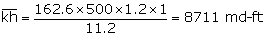 The semilog slope is 11.2 psi/log cycle and the early transient flow period is a straight line on a semilog plot. These are synthetic data and the basic reservoir properties are known in advance. The average kh is: