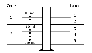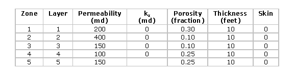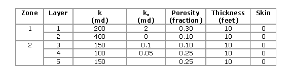 The properties of the layers and zones (Figure 6) are shown below. Notice that the vertical permeability (kz is zero.