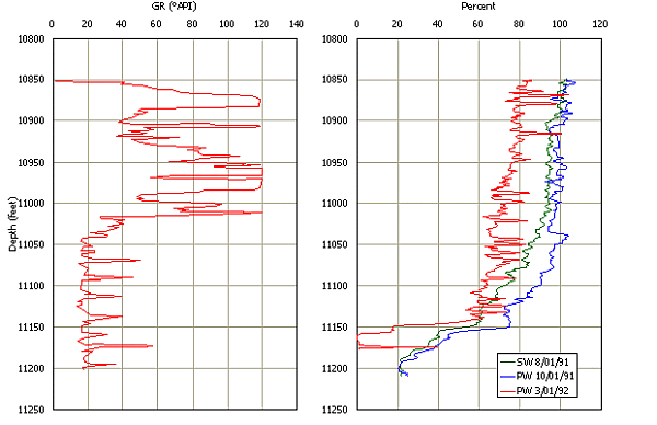 | General Observations: | Data were available for approximately twenty wells in a multilayered scenario. There is reasonably massive sand, with some shale markers and an overlying (slightly shalier) sand or sands, embedded in thick lower permeability rock. In most cases, even with fractured stimulation, it was difficult to develop and sustain injection in the upper sand (the sand embedded in the shales. |