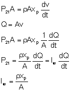 Inertance (sometimes called accelerance) is associated with the inertia effects of fluid in a conduit. As a basic example, assume that the fluid is inviscid (m = 0). For a pressure drop P21 = P2 - P1 across the fluid in a conduit with an internal cross- sectional area of A, a net force P21A would accelerate the mass of fluid rAxp.(x will be used to designate length xp being pipe length and xf being fracture half-length). As a result, in a pipe: