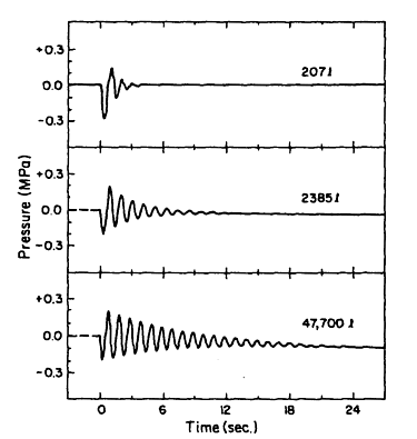 Figure 10. Free oscillations Mounds well after injection of 207, 2,385 and 47,700 liters of water.