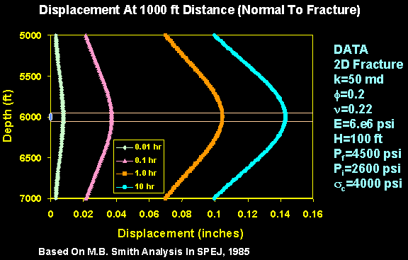 Remarkably large displacements occur for substantial distances away from large hydraulic stimulation fractures. Figure 10 is one example.
