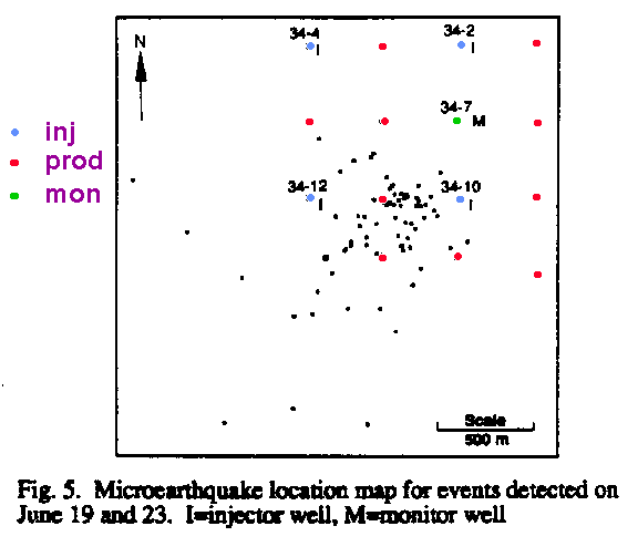 Figure 13 shows microearthquakes detected during injection in the San Andres Field.