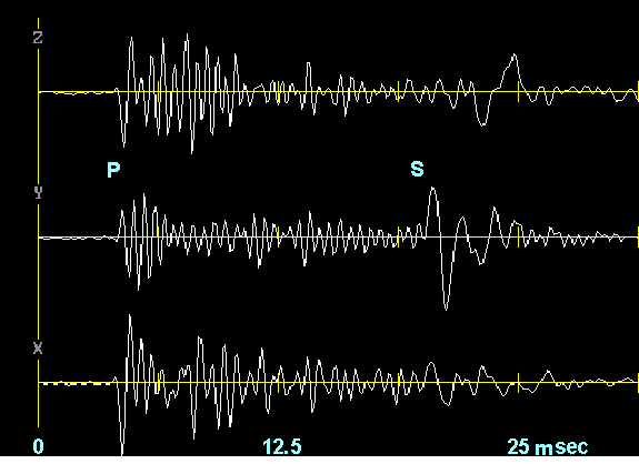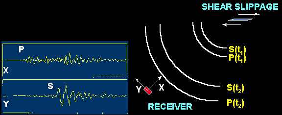 When slippage occurs, both compressional waves (P waves) and shear waves (S waves) are emitted. The wave velocities are different - P waves travel faster than S waves. These waves are detected at a triaxial receiver (Figure 2).
