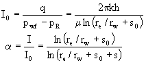 In reopening (either for a newly converted, fractured producer or for an injector being brought back on line) any pre-existing cake will impact new cake deposition. Wennberg, 1998, provided a good analytical analog for this for radial injection. Suppose that there is an initial skin, s0. The injectivity during startup or reinjection is: