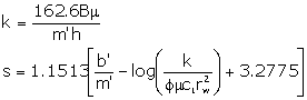 m' is the slope of a multi-rate plot (psi/STBPD/cycle),
