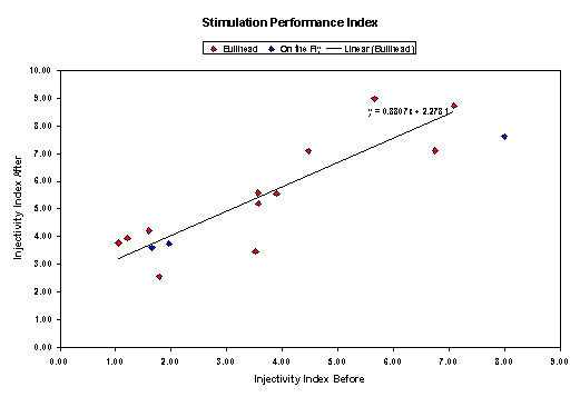 before stimulation results in a larger Improvement Ratio. The lower the injectivity, the greater the relative improvement.