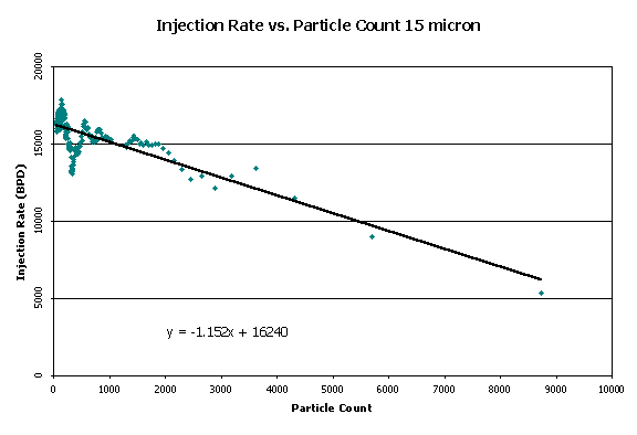 | View Figure 5: | Injection Rate vs. Particle Count for 15 micron particles. |